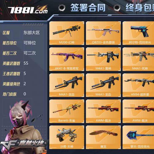 【可二次 英雄武器数量:55 英雄角色数量:2 王者武器数量:5 AK47-火麒麟音效卡,M4A1-黑骑士音效卡 稀有武器:11个 】【商品标题】:【幻神1皮】【毒蜂】【斯泰尔-蝴蝶】【M200-幻神】